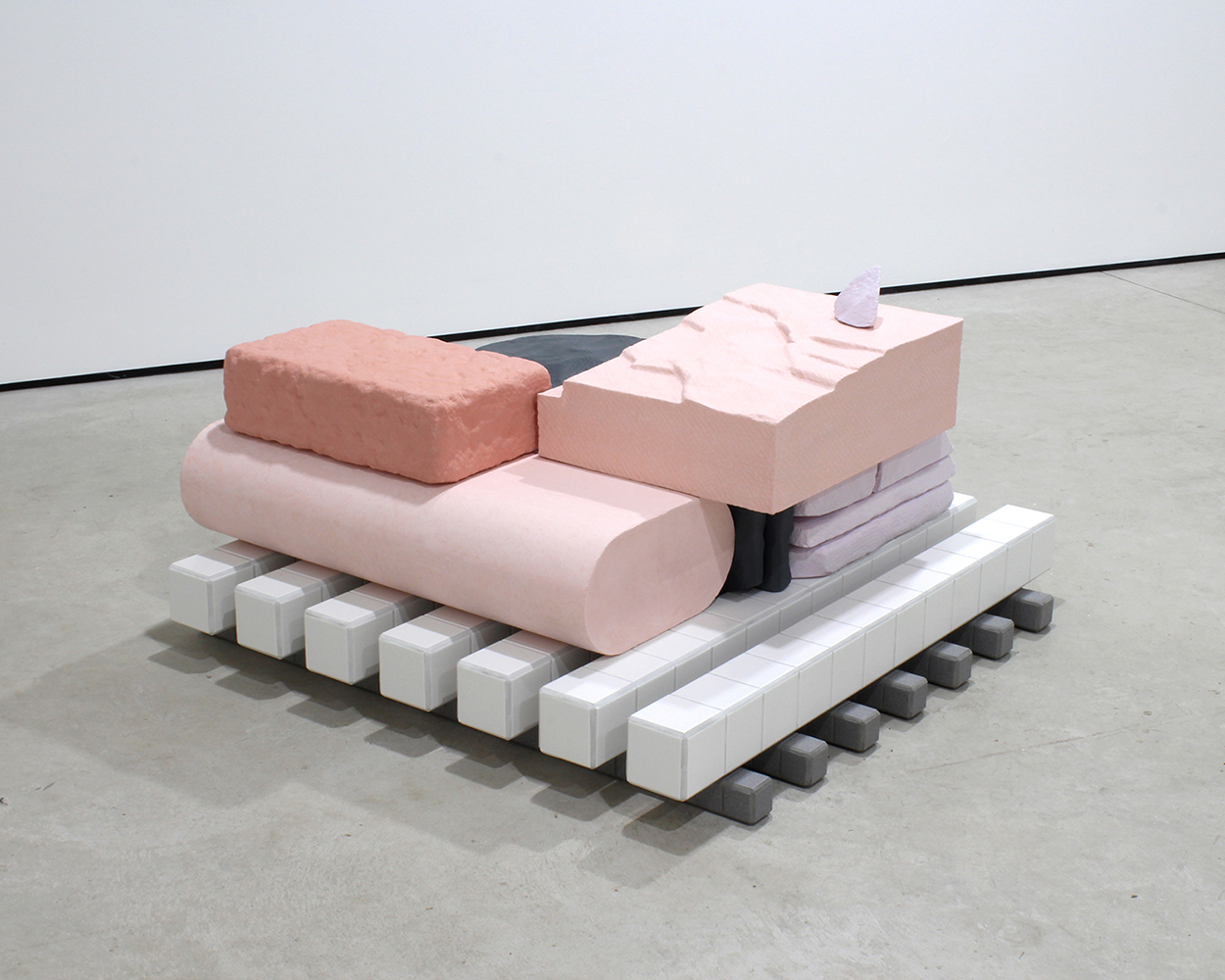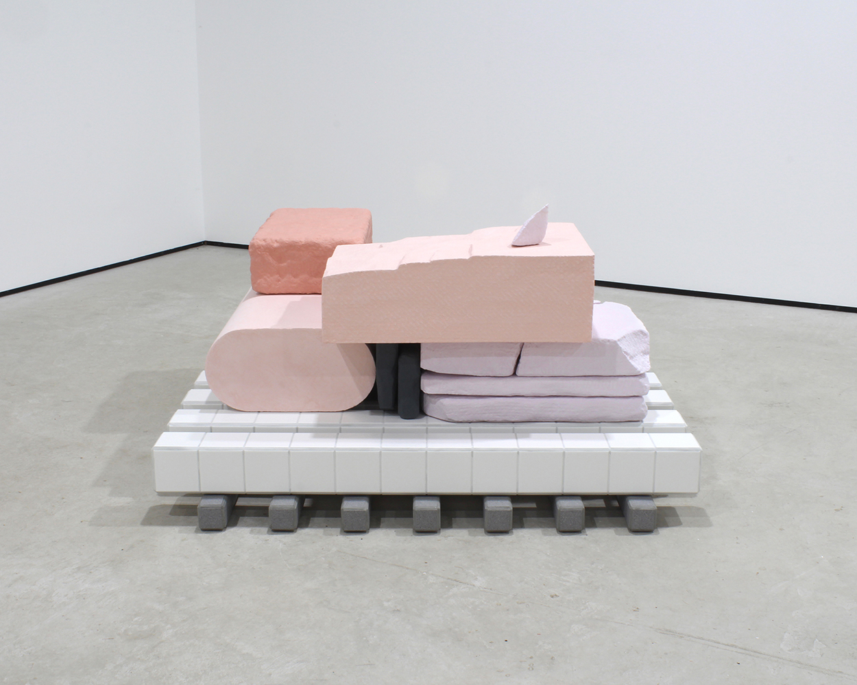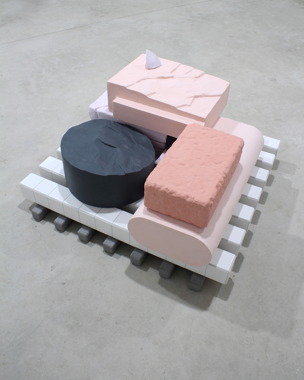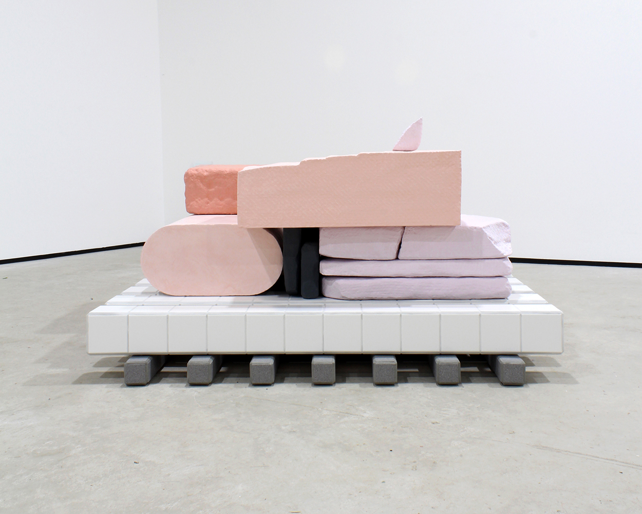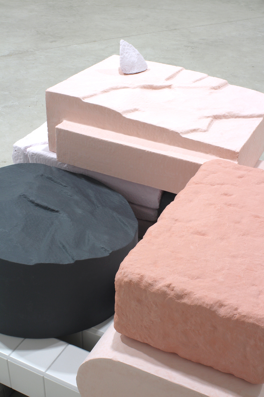 MDF, softwood, polystyrene, fibreglass matting, pigmented Jesmonite, ceramic tiles and grout.
