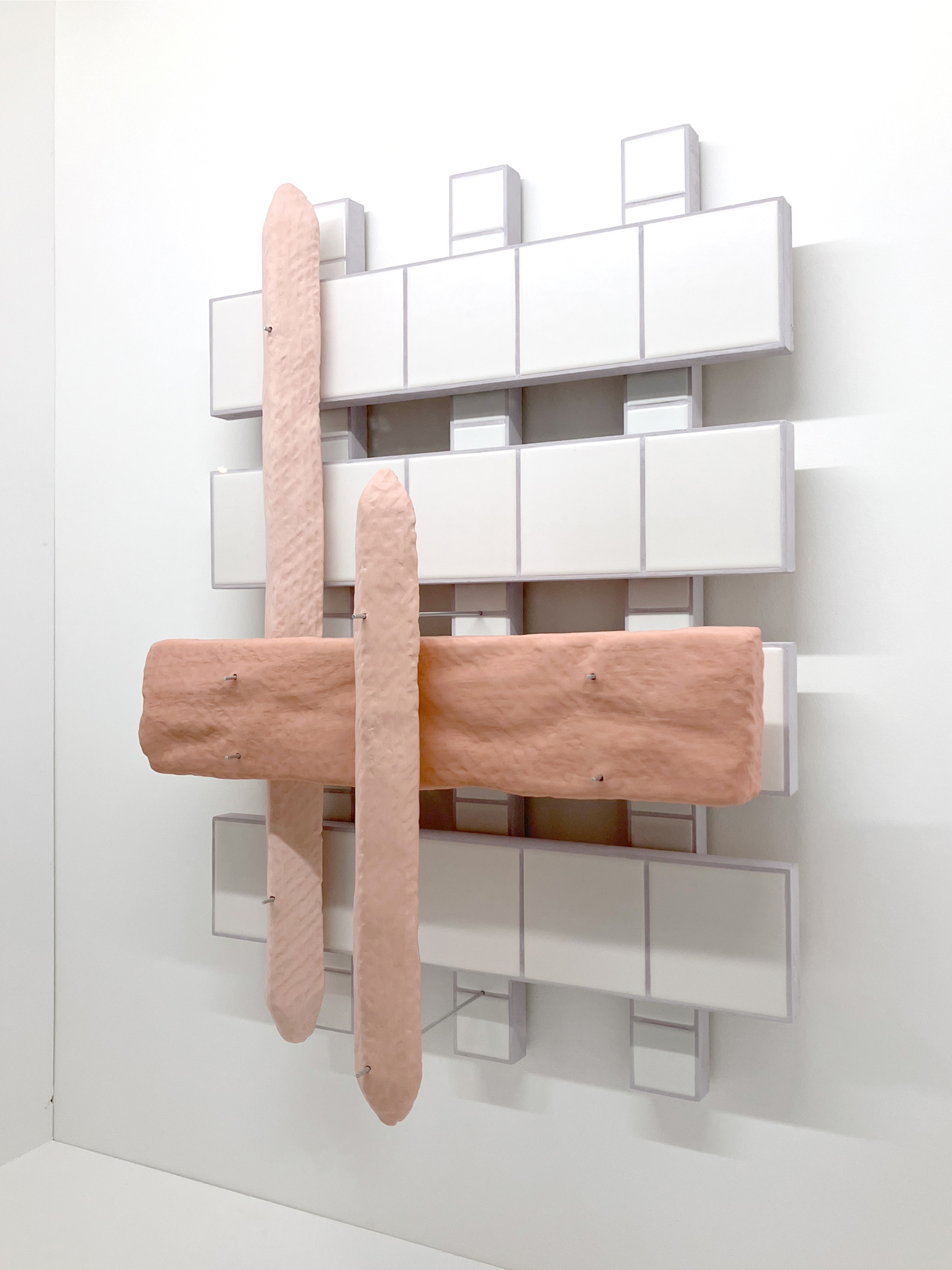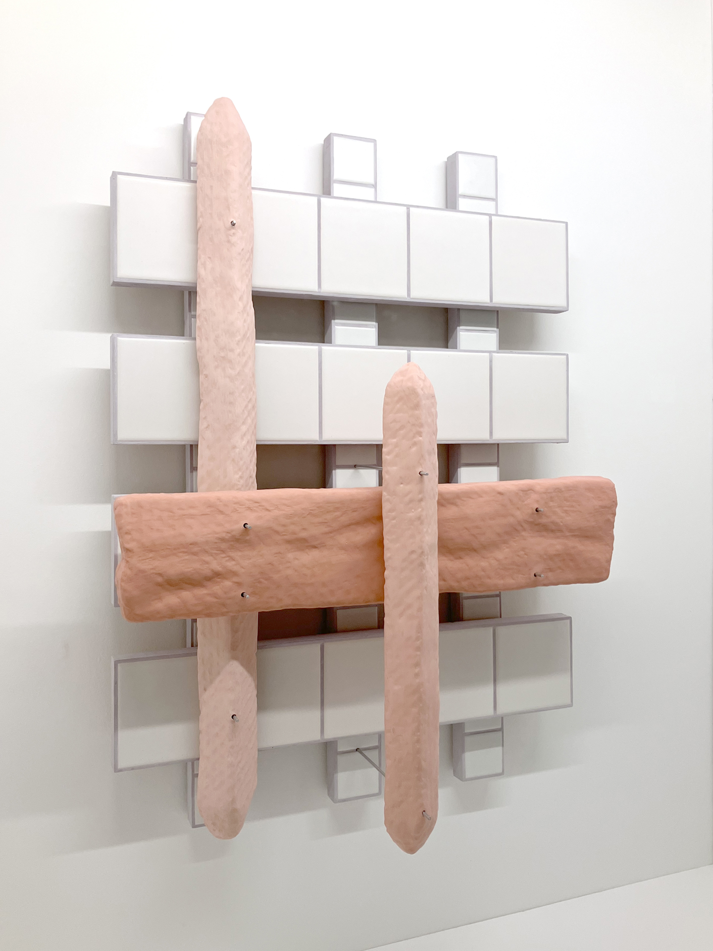 Polystyrene, fibreglass matting, pigmented Jesmonite, MDF, ceramic tiles, grout, aluminium rod.