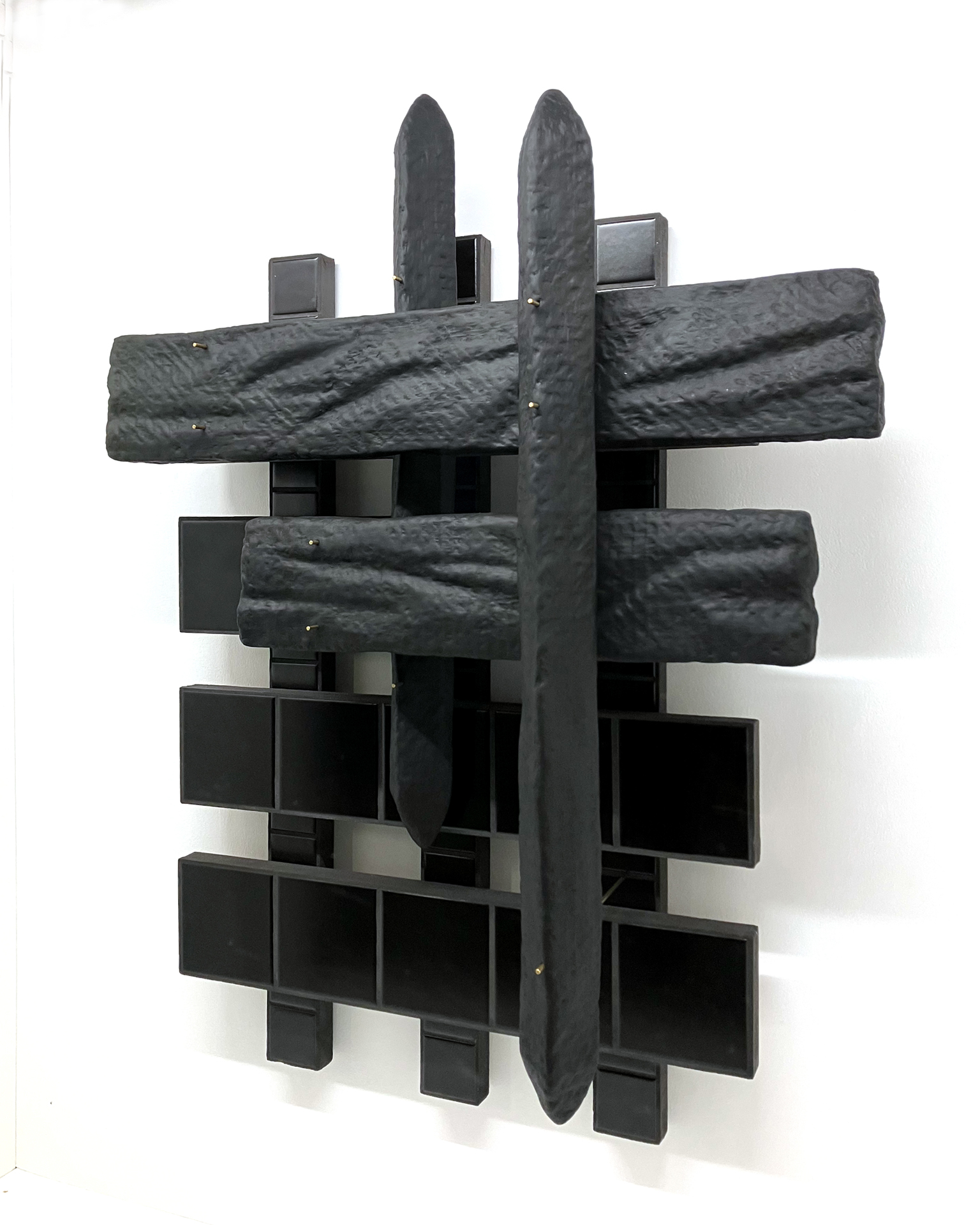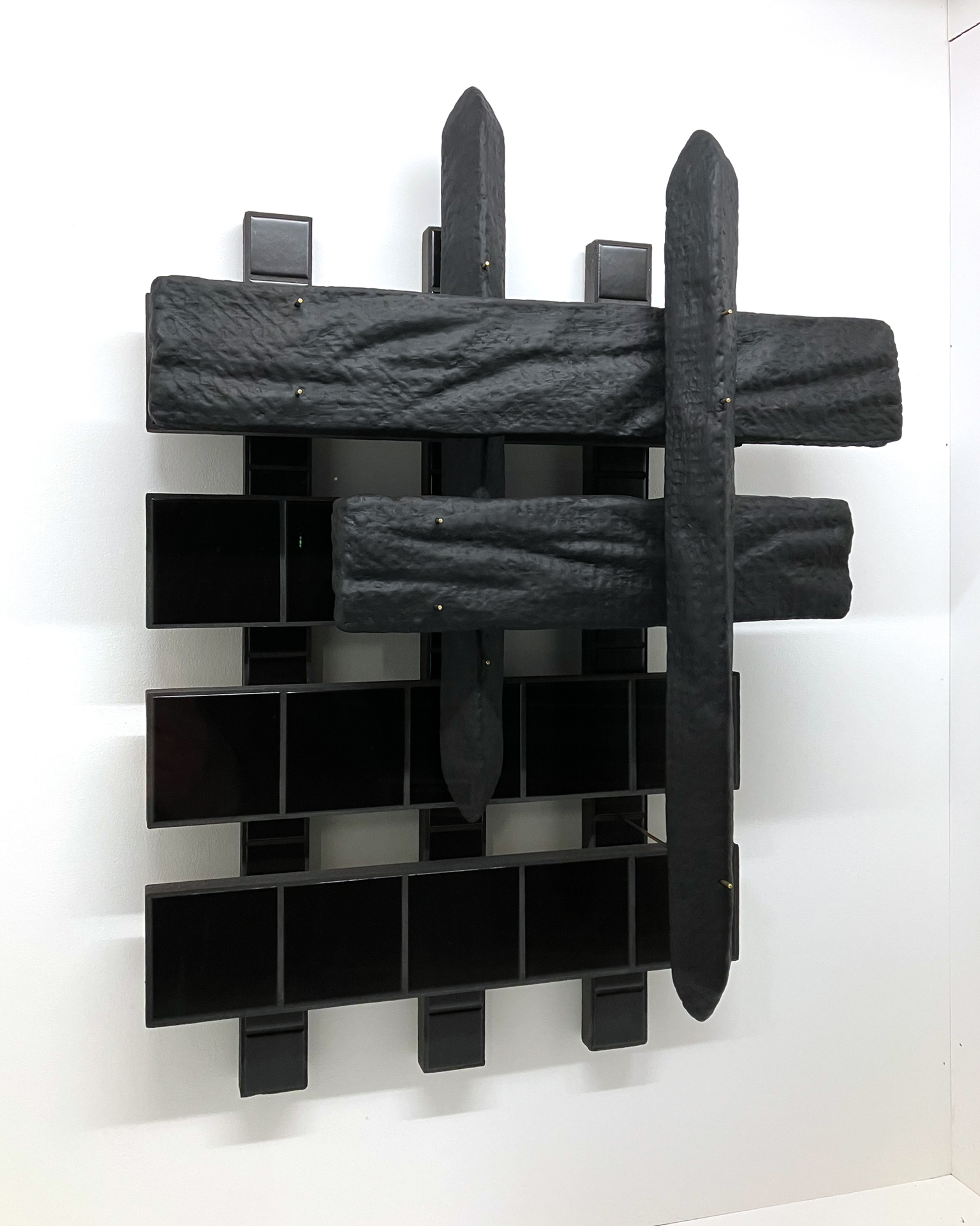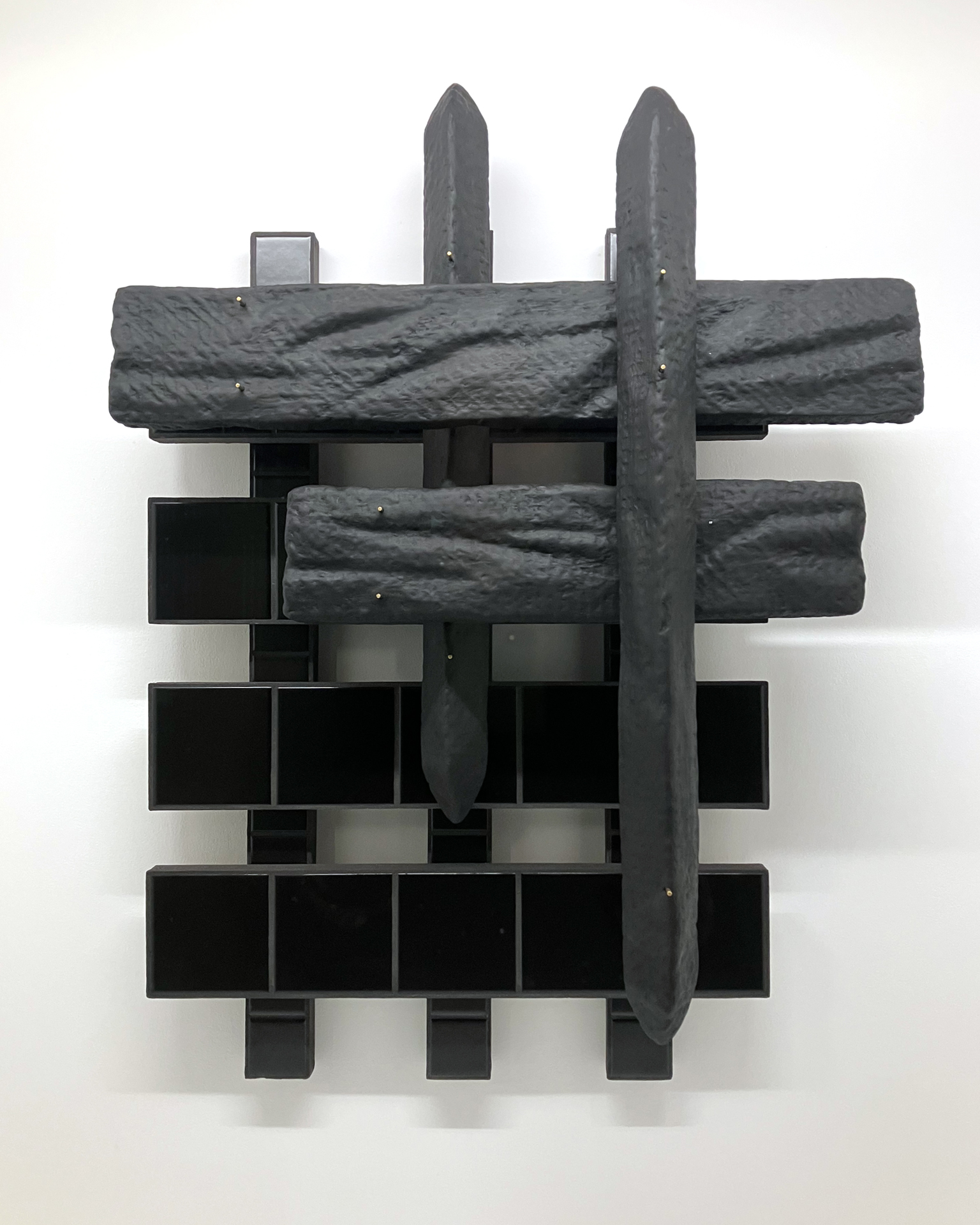 Polystyrene, fibreglass matting, pigmented Jesmonite, oil stick, MDF, ceramic tiles, grout, brass rod.