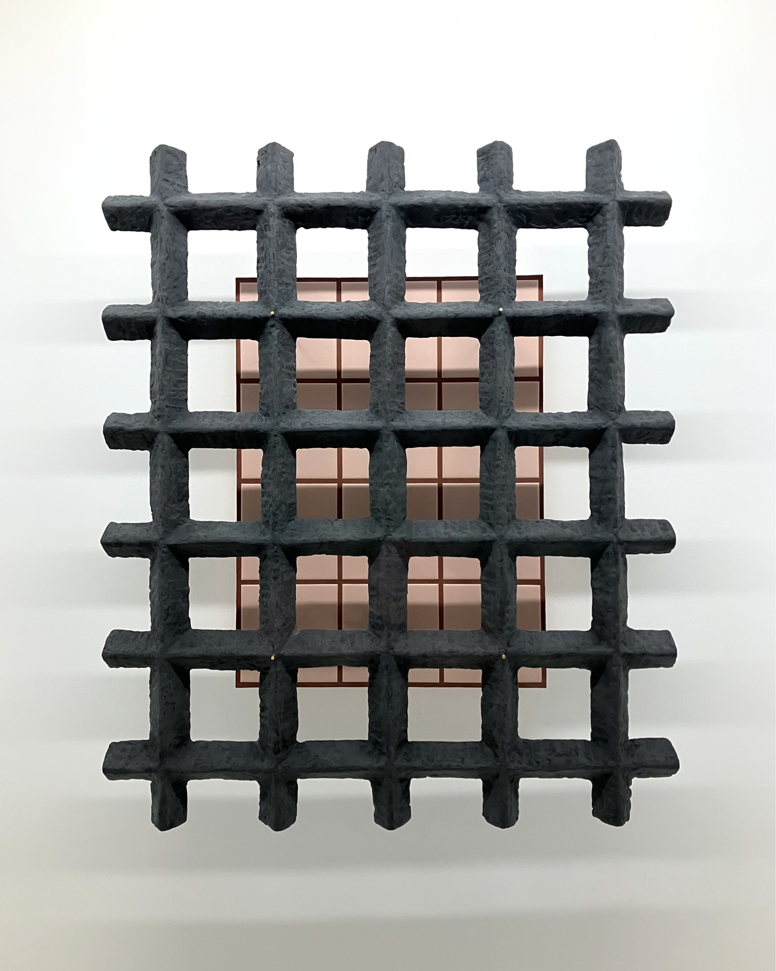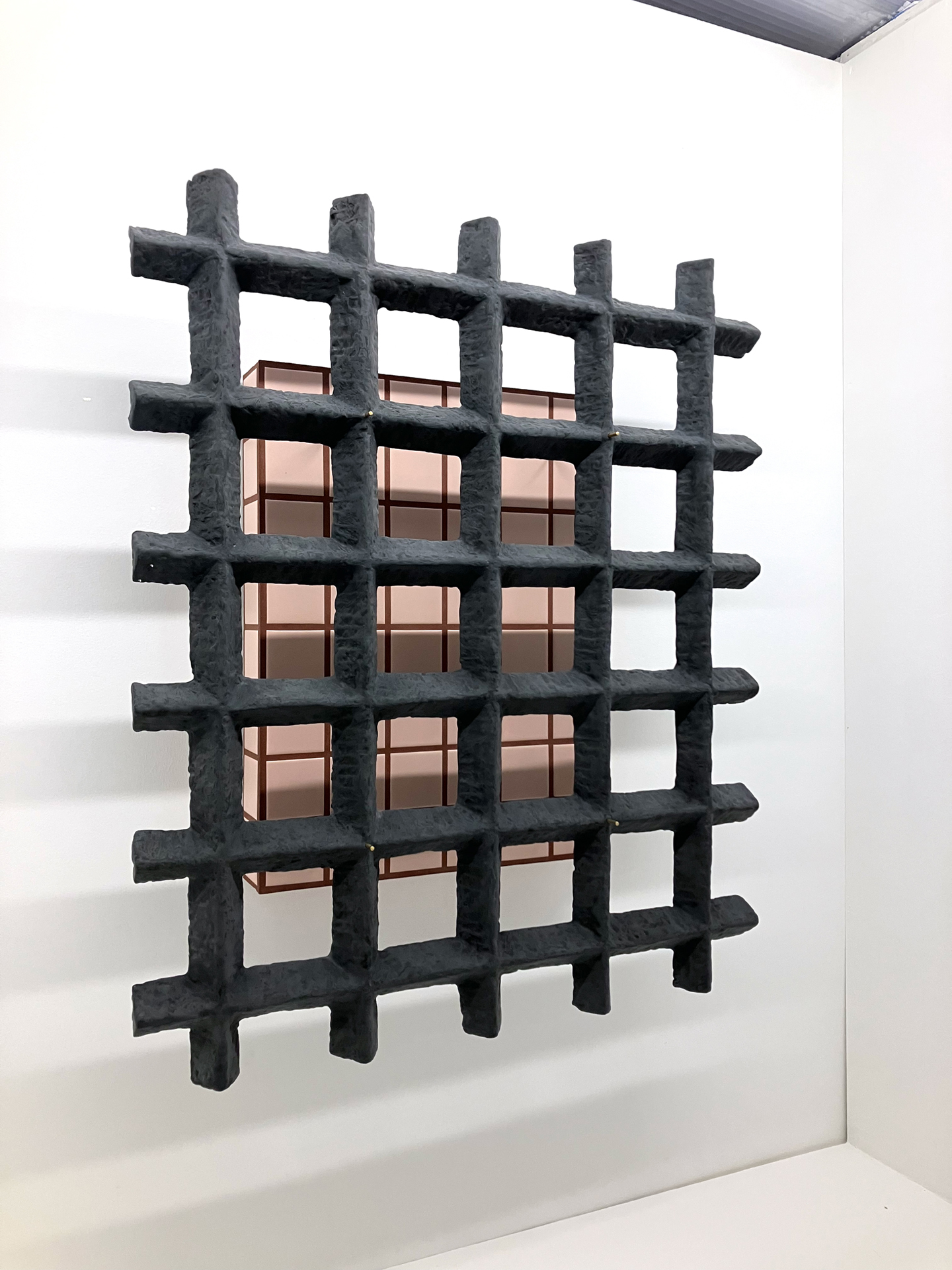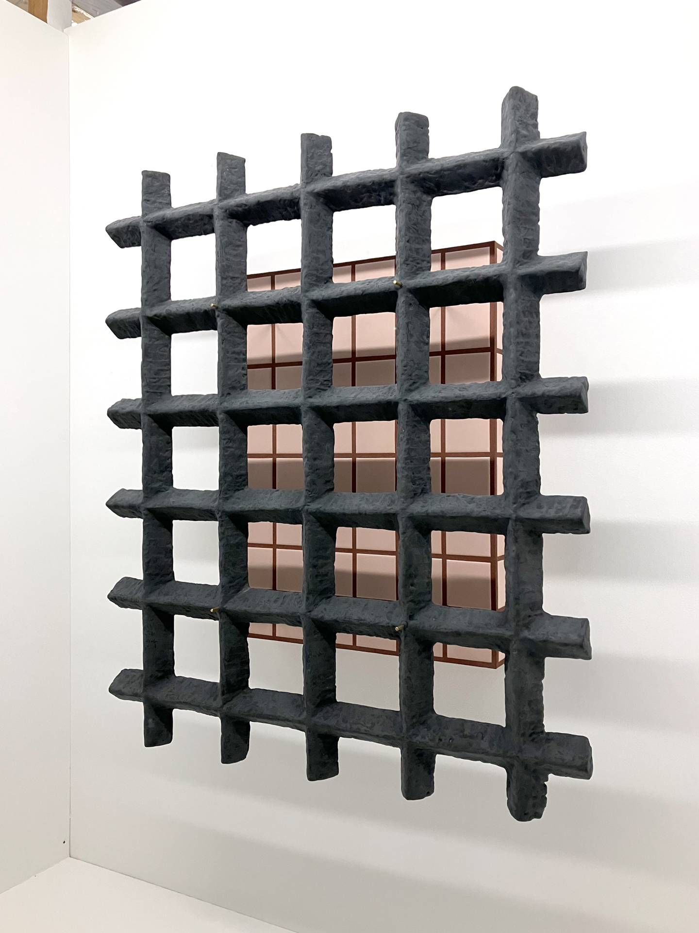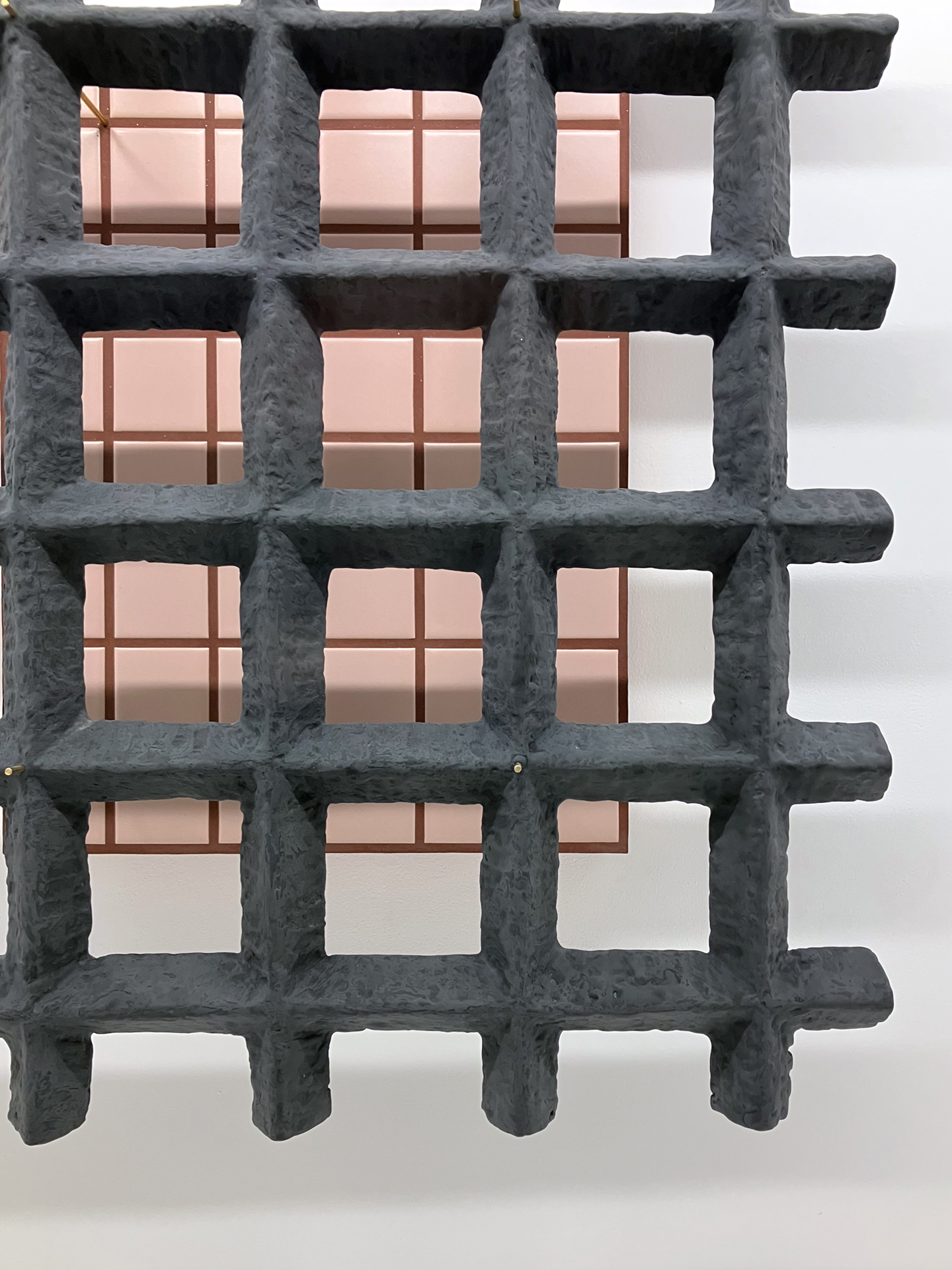 Polystyrene, fibreglass matting, pigmented Jesmonite, MDF, ceramic tiles, grout, brass rod.